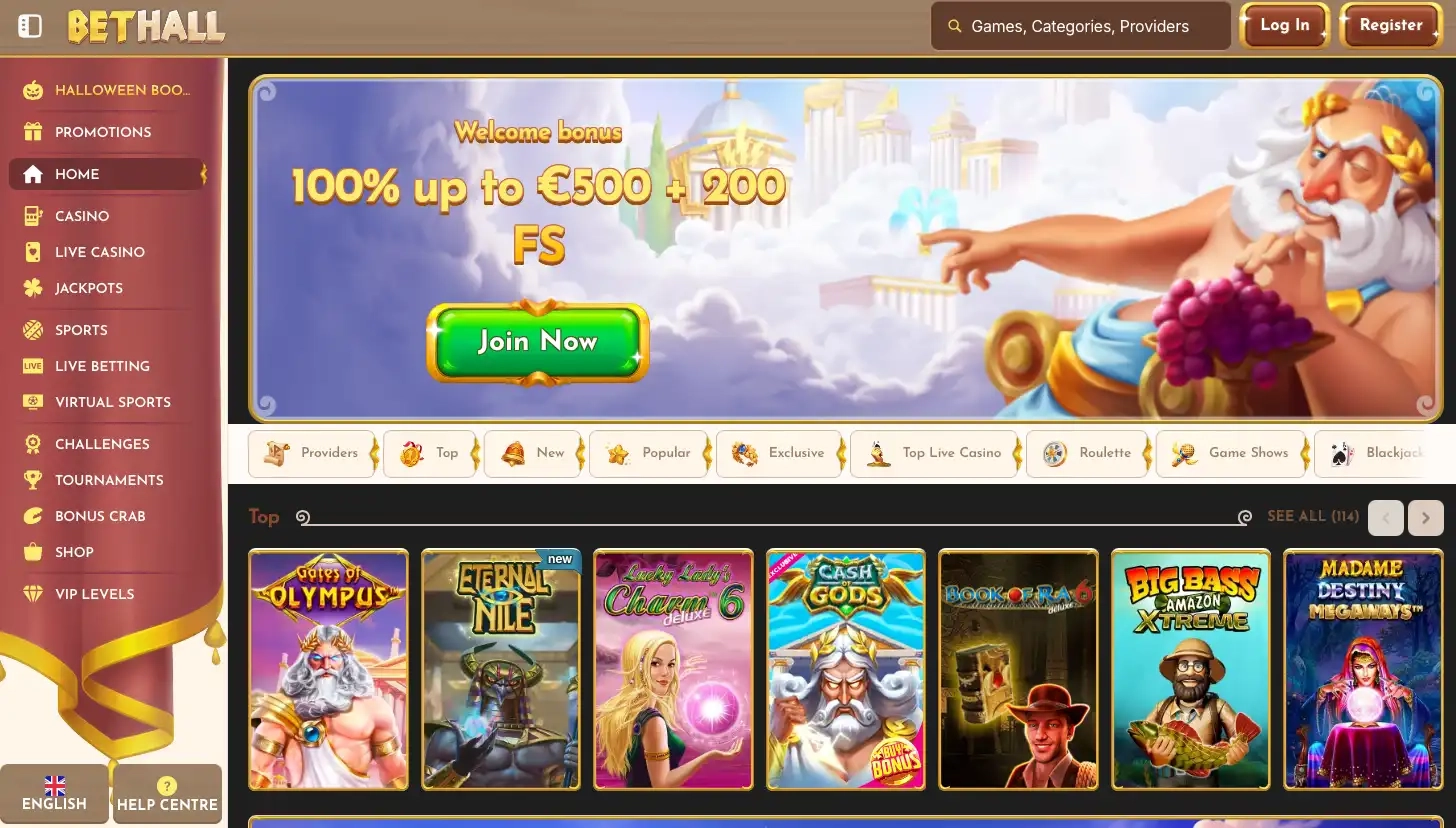 Bethall Casino lepojas ar iespaidīgu spēļu bibliotēku, kurā ietverta vairāk nekā 6000 spēļu izvēle no gandrīz 174 vadošajiem izstrādātājiem, tostarp NetEnt, Microgaming, Pragmatic Play, Evolution Gaming, Play’n GO, Yggdrasil, Betsoft, Red Tiger, Hacksaw Gaming un Spinomenal. Šāda sadarbība nodrošina augstas kvalitātes grafiku, inovatīvas funkcijas un godīgu spēļu gaitu, kas apstiprināta ar iTech Labs testiem. Apskatīsim galvenās spēļu kategorijas, kas pieejamas Bethall Casino.