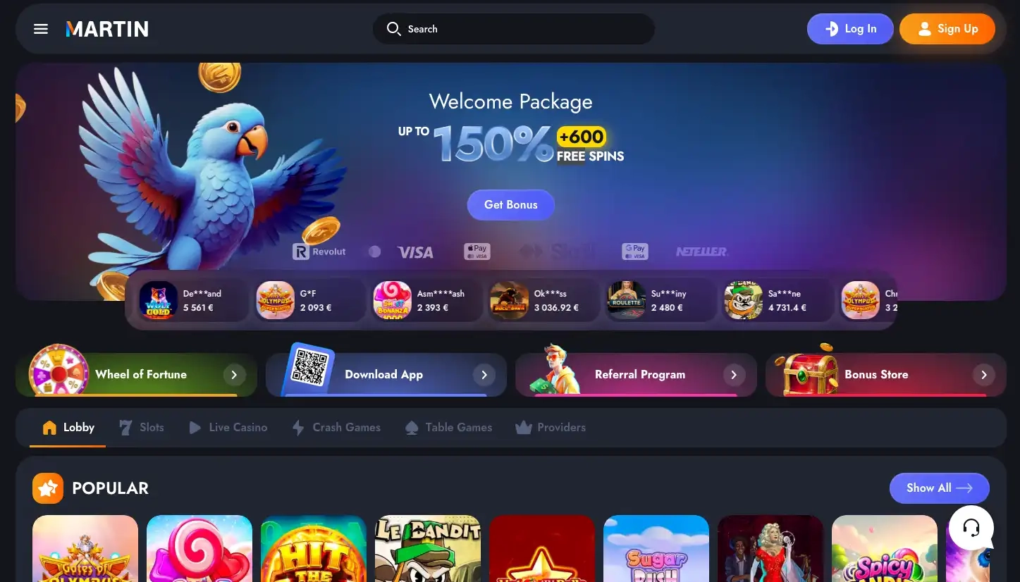 Martin Casino spēļu klāsts ir veidots tā, lai tajā apvienotos izklaide, dažādība un azarts. Ikviens var atrast sev piemērotu spēli – neatkarīgi no tā, vai meklē vieglu atpūtu pie vienkāršiem automātiem, vai vēlas nopietnāku azartspēļu pieredzi ar stratēģiju galda spēlēs un live kazino.