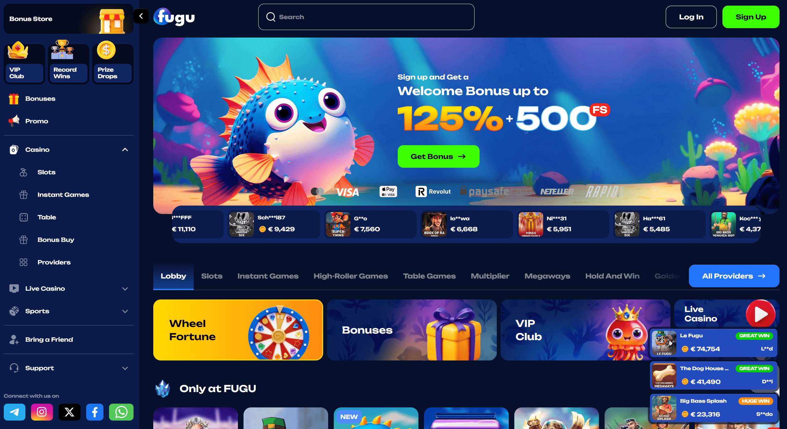 Maksājuma metodes Fugu Casino ir pielāgotas mūsdienu spēlētājam. Pieejamas tradicionālās bankas kartes, e-maki un dažkārt arī kriptovalūtas. Tas dod elastību – vari izvēlēties to, kas tev šķiet drošākais un ērtākais.
